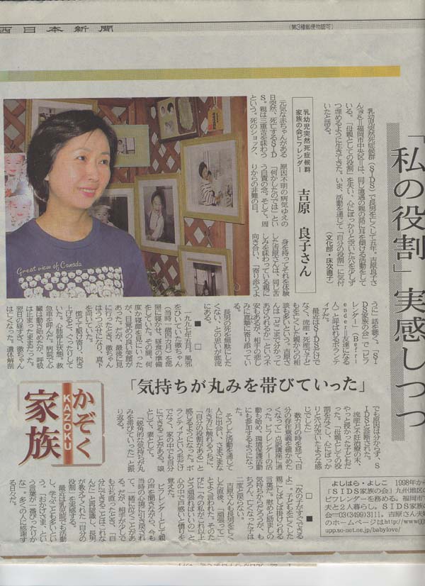 SIDS家族の会のビフレンダーとしての私を取り上げてくださった新聞記事です。(⇒)